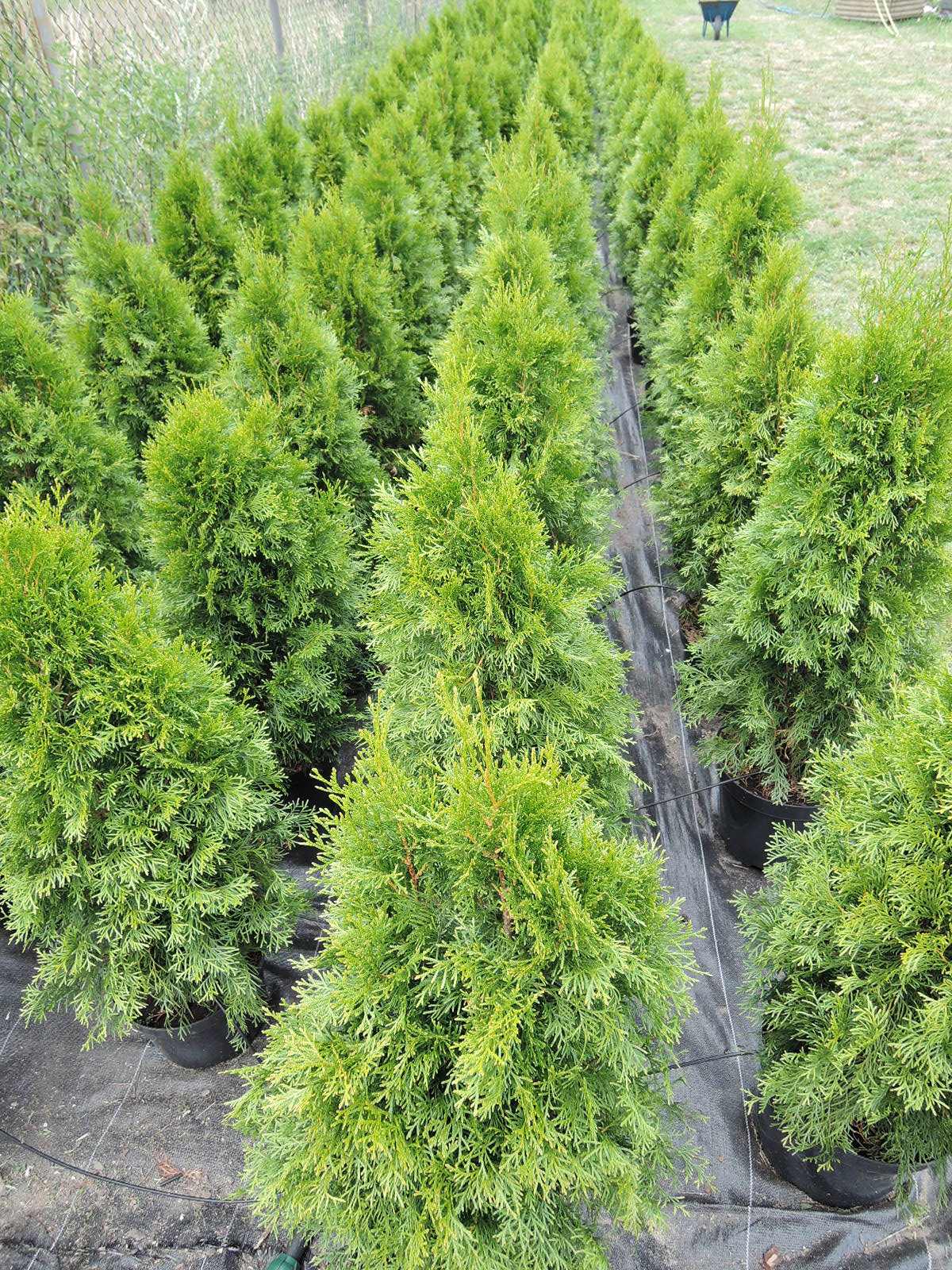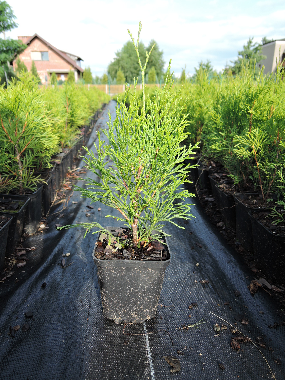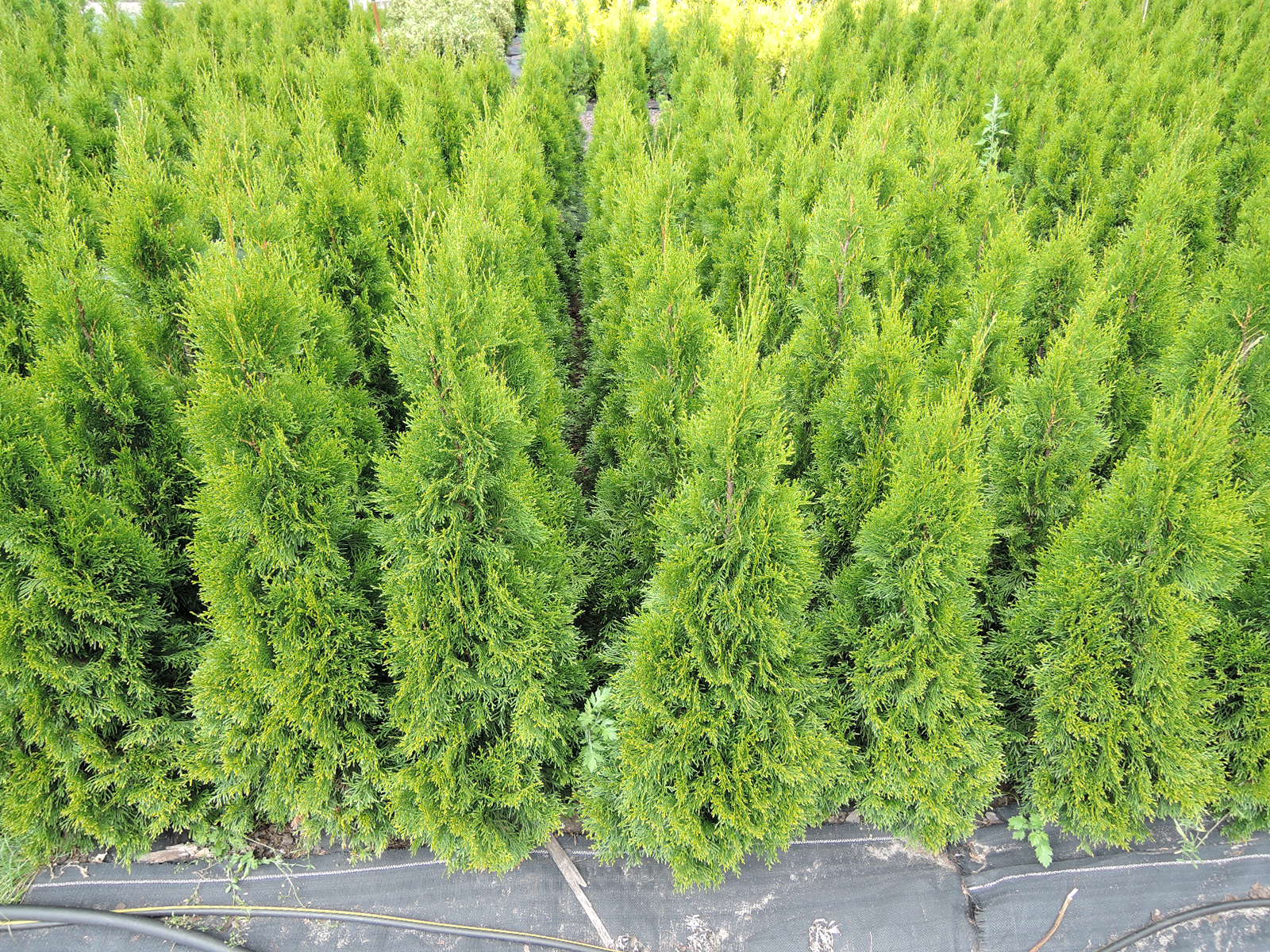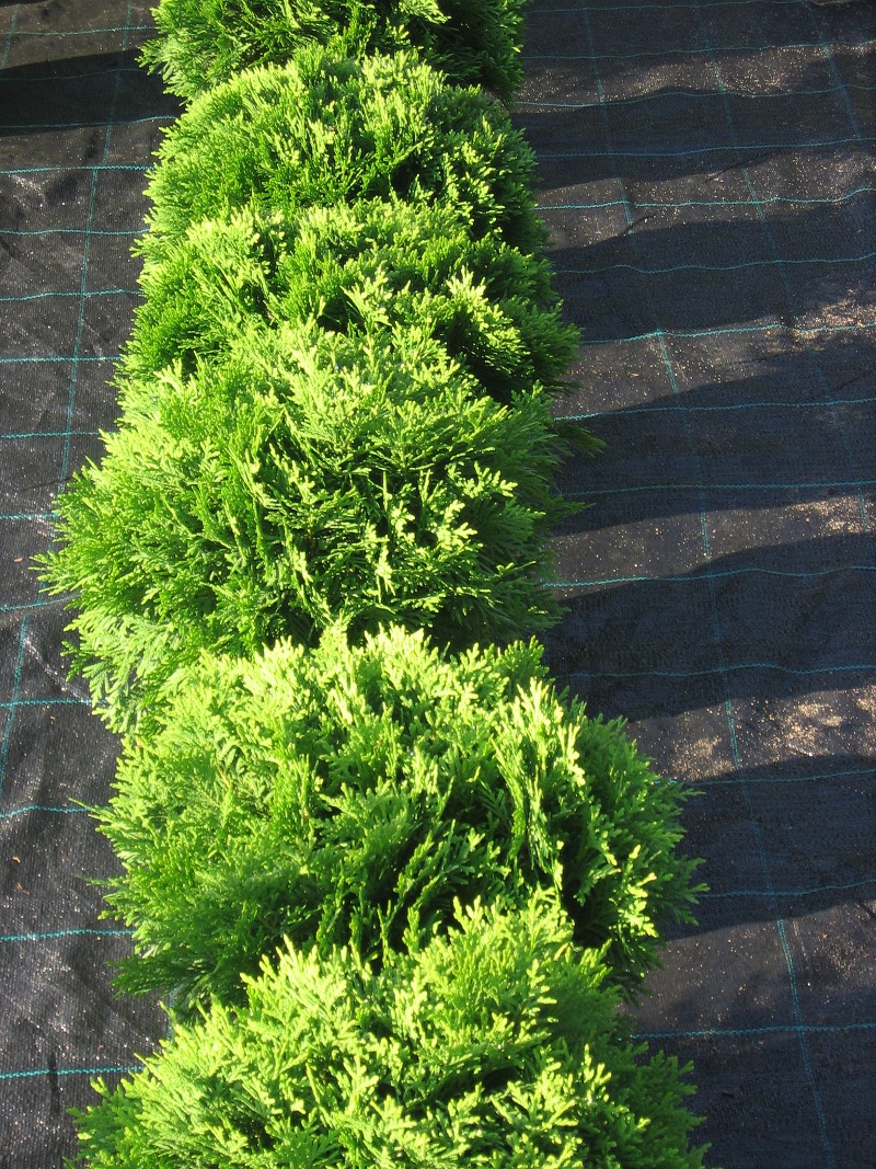 Tuja zółta. W doniczkach lub kopana.